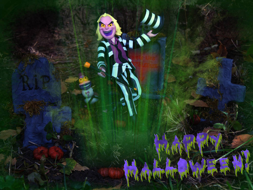 Az oldal jelenlegi hangulathoz s kinzethez, (nem meglep mdon) vlasztottam s ksztettem el az idei "Halloween ksznt" fotmat: Beetlejuice tmban! Jelenleg a kollekcimban lv kedvenc Beej figurmat hasznltam hozz, amit 1-2 ve (nem emlkszem pontosan) vettem, a gyrtja a The Loyal Subjects cg. A figura mell rkez nhny kiegsztt is felhasznltam, kztk a httrben, Beej egyik Neitherworld-bl szrmaz szomszdjt: Ginger-t is a szteptncos rispkot :) Prbltam a kpnek megadni a Beetlejuice-fle sznpadias belp feelinget, s nem tudom mennyire ltszik vglis a szerkeszts miatt, de a figura "lebeg" egy srgdr fltt. Bszke vagyok arra ahogy sikerlt, kvncsi vagyok rjn-e valaki, hogyan oldottam meg ezt a figura lebegs dolgot, mert egyltaln nem arrl van sz, hogy kivgtam egy kprl Beetlejuice alakjt s csak simn beillesztettem. Kzben meg bszke vagyok a kis mini srkveimre, amiket 1-2 nap alatt gyorsan legyrtottam a fot kedvrt. Beetlejuice mgtt van a sajt srkve is a "Here lies Beetlejuice" felirattal, s koponyval a tetejn. Nyilvn nem tkletes replikja a filmbli knek, deht na, ennyit tudtam kihozni magambl...Remlem tetszik nektek is, mert tbb rnyi munkm van benne, meg egy kis srgdr ss is XD s rlk, hogy sszejtt a fot idben! Happy Halloween!