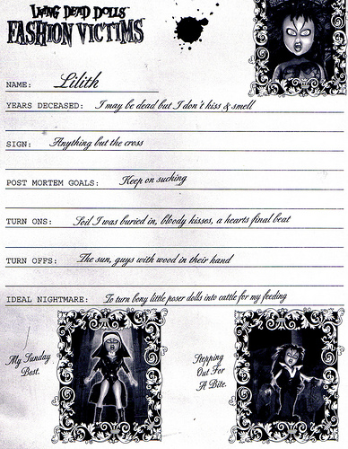 Mr j ideje tologattam megint ezt a kis bemutat/vlemnyez blogocskt, de gondoltam azrt mr ideje lenne megrni. Termszetesen egy msik Living Dead Dolls Fashion Victims babmrl van sz, aki nem ms mint Lilith.